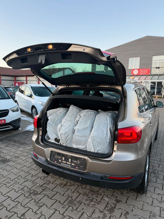 Willkommen bei AutoAvant.de! Wir freuen uns, Sie bei uns begrüßen zu dürfen. - Als erfahrener Autohändler bieten wir Ihnen eine breite Auswahl an hochwertigen Fahrzeugen. - ∗Unsere Dienstleistungen im Überblick: ∗Finanzierungsmöglichkeiten:Bei uns können Sie Ihr neues Auto bequem finanzieren. ∗Inzahlungnahme:∗ - Gerne kaufen wir Ihr altes Auto als Anzahlung. ∗Öffnungszeiten:Wir haben auch am Sonntag für Sie geöffnet. Falls Sie Interesse an einem unserer Fahrzeuge haben, zögern Sie bitte nicht, uns zu kontaktieren. - Wir sind jederzeit für Sie da und freuen uns auf Ihren Besuch.Dieser gepflegte VW Tiguan aus dem Jahr 2013 präsentiert sich in einem ausgezeichneten Zustand mit lückenloser Servicehistorie. Der 160 PS starke Benzinmotor mit 1390 ccm Hubraum und Frontantrieb bietet eine angenehme Fahrleistung bei gleichzeitig vernünftigem Verbrauch. Die beige Metallic-Lackierung harmoniert perfekt mit dem schwarzen Stoffinterieur. Mit nur zwei Vorbesitzern und der Einstufung in die Emissionsklasse Euro 5 (grüne Plakette) ist dieser SUV eine zuverlässige Wahl. - Die Ausstattung umfasst zahlreiche Komfort- und Sicherheitsmerkmale: Automatische Klimaanlage, beheizbare Vordersitze, Lichtautomatik, Regensensor und ein Multifunktionslenkrad in Leder. Für Ihre Sicherheit sorgen Front-, Seiten- und weitere Airbags, ESP, ABS sowie ein Müdigkeitswarnsystem. Die Park-Sensoren vorne und hinten erleichtern das Rangieren in engen Parklücken. - Sportpaket mit Sportsitzen, Winterpaket mit Winterreifen, Freisprecheinrichtung und USB-Anschluss, Dachreling und Laderaumtrenngitter, Automatische Klimaanlage mit Klimaautomatik, Berganfahrhilfe und Traktionskontrolle, Nebelscheinwerfer und Kurvenlicht, Isofix-Kindersitzbefestigung, Garantie und Pannenkit, Scheckheftgepflegt und Nichtraucherfahrzeug -